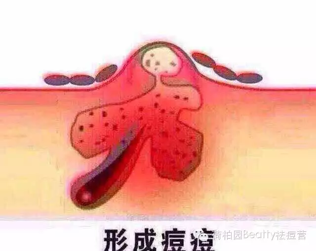 首先,我们一起来看看痘痘的形成:由于我们日常饮食、作息造成体内毒素累积,久而久之毒素越来越多,势必要找地方排泄,这时就会通过我们的面部皮肤,以油脂的方式排出来,而我们没有及时的处理,时间长了就会堵塞毛孔形成细菌,感染我们的皮肤,慢慢的毒素越来越多,痘痘就这样顺理成章的形成了。来吧,上图看看。。。