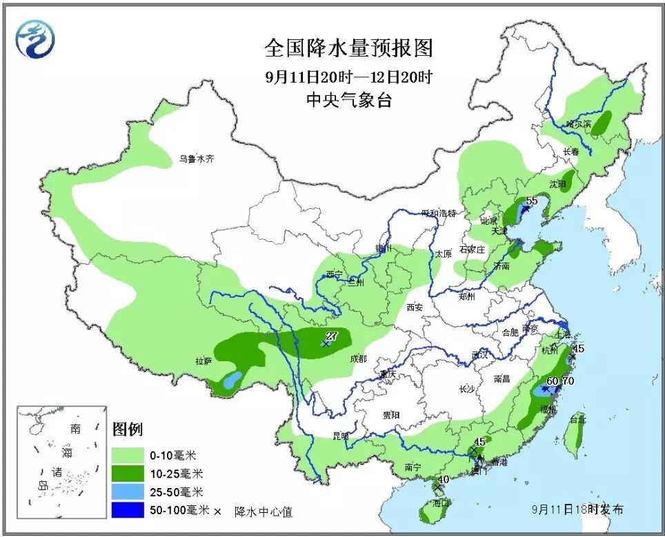 今日,浙江南部、福建西部及江西南部等地有大到暴雨,明日,南方本轮降雨将趋于结束;华北、东北地区今明两日将在雷雨和阵雨中迎来降温。华北一带今日最高气温普遍降至25℃左右,明显转凉。