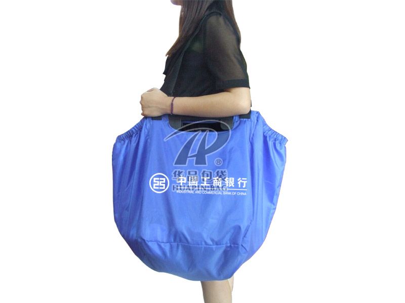 本实用新型的有益效果是:本实用新型通过简单的结构解决了购物袋直接固定在购物车上面的问题,使用方便。环保购物袋,可以长期循环使用。