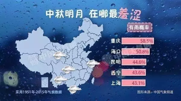 从往年天气统计来看,若当天云量低于5成,均可以看到皓月当空或彩云追月的美景。从城市排行榜看,北方城市更利于赏月,尤其是天津、北京、长春、乌鲁木齐和沈阳。